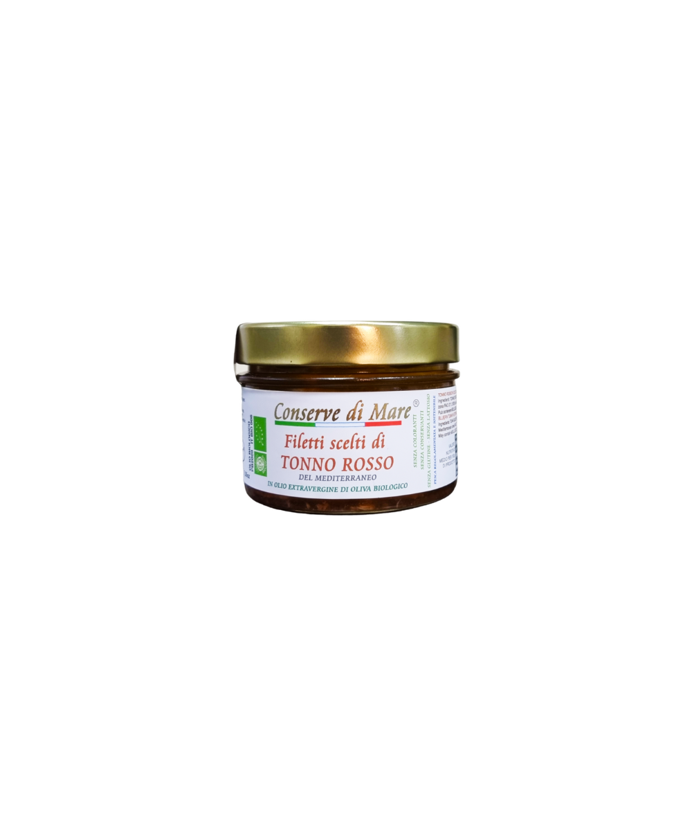 Roter Thunfisch (Thunnus thynnus) 80 %, natives Olivenöl extra 20 %, Salz aus Volterra (Italien).