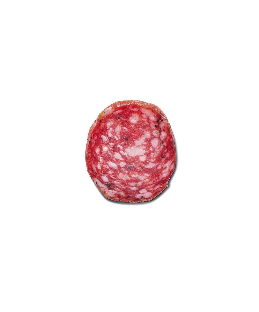 Sie ist eine noch schmackhaftere Variante der klassischen Salami, mit einem aromatischen und duftenden Geschmack. Die Salami mit Trüffeln von Levoni ist eine besondere Salami mit Trüffelgeschmack, die 5 Wochen gereift ist und aus Fleisch von in Italien geborenen und aufgewachsenen Schweinen hergestellt wird. Eine originelle Neuinterpretation unserer beliebten Salami, verziert mit schwarzen Trüffelflocken. In der Nase eine herrliche Kombination aus Gewürznoten, Pfeffer und Trüffel. Der Geschmack fasziniert, die Aromen werden im Mund in vollen und eleganten Aromen verlängert. Die Aromatisierung ist vollkommen natürlich und erfolgt nach einem exklusiven Levoni-Rezept.Sie kann verwendet werden, um ein Sandwich oder eine Pizza zu belegen, aber auch auf der Platte serviert mit anderem Aufschnitt, Käse und einem guten Glas Rotwein.Hier wird sie im 250 g Format verkauft, es muss innerhalb von 4 Wochen verbraucht und kühl und trocken gelagert werden. Nach dem Öffnen muss es jedoch im Kühlschrank aufbewahrt werden. Bestellen Sie jetzt die Levoni-Trüffelsalami: NATURALEITALIANO verpflichtet sich, das Produkt innerhalb von 48 Stunden in die ganze Welt zu liefern.