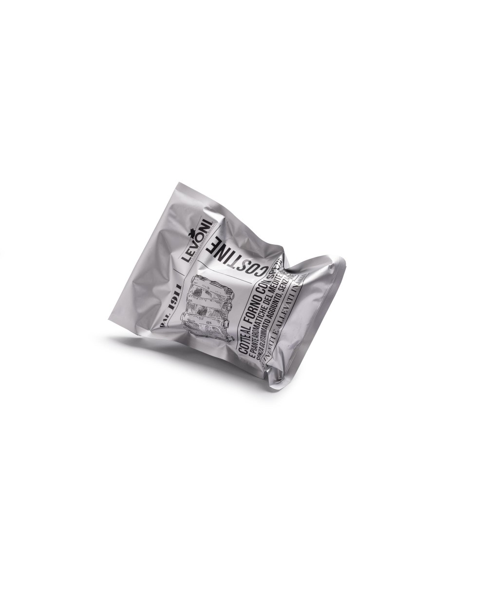 Die Schweinerippchen von Levoni werden mit aromatischen Kräutern gewürzt, außen geröstet, um ihre Farbe anzunehmen, und dann bei niedriger Temperatur und mit regulierter Luftfeuchtigkeit gegart, damit das Fleisch weich und schmackhaft bleibt. Der Duft ist einladend, der Geschmack saftig und die Schmackhaftigkeit ausgewogen. Die gebackene Rippchen von Levoni sind bereits gekocht und müssen nur noch erhitzt werden; im Wasserbad, je nach Belieben gebacken, gebraten oder gegrillt, vielleicht leicht angefeuchtet mit Brühe oder Wein oder Cognac. Sie werden am Knochen entlang geschnitten und auf einer Servierplatte angerichtet.