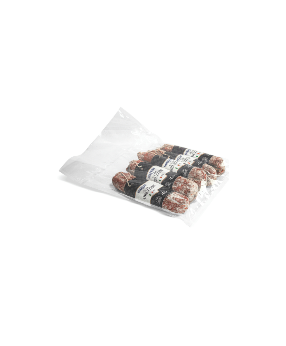 Die kulinarische Tradition der Abruzzen ist voll von charakteristischen Produkten, die Ihre Kunden erobern werden. Eine Idee? Überraschen Sie sie mit der Abruzzese Salami von Golfera! Es ist eine typische Spezialität der Abruzzen, die sich durch ein besonderes würziges Aroma auszeichnet. Es wird mit Schweinefleisch erster Wahl, ausschließlich italienischer Herkunft, zubereitet, fein gemahlen und mit gemahlenem weißem Pfeffer und reichlich schwarzen Pfefferkörnern aromatisiert. Abruzzesische Salami kann auf dem Schneidebrett serviert werden, begleitet von Käse und Bruschetta oder zu Sandwiches und Pizza. Es kann jedoch auch in anderen leckeren Rezepten verwendet werden, beispielsweise in herzhaften Kuchen. Bestellen Sie jetzt die Abruzzese Salami von Golfera: NATURALEITALIANO verpflichtet sich, das Produkt innerhalb von 48 Stunden in die ganze Welt zu liefern.