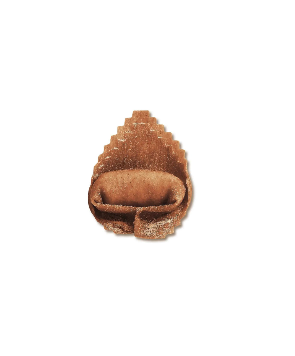 durum wheat semolina, soft wheat flour, eggs (20% on pasta; 10% on total), water, cocoa (1.5% on pasta) salt, Ricotta (whey, milk, salt, acidity regulator: E330), breadcrumbs (soft wheat flour, salt), cooked ham (pork, salt, sugar, dextrose, natural flavors, antioxidant: E 301, preservative: E 250), Grana Padano PDO cheese (milk, salt, preservative: egg lysozyme), eggs, raw ham (pork, salt, preservative: E 252), truffle aroma (0.6% of the filling; 0.3% of the total), salt, spices, preservative: E 200.