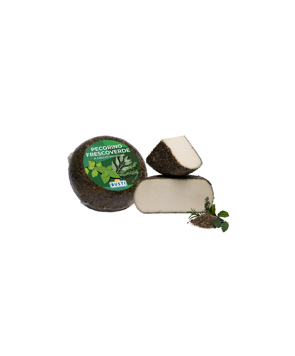 The Frescoverde of pure vegetable rennet sheep, produced by Busti Formaggi, is a riot of flavors and aromas capable of conquering even the most demanding palates. A single taste is enough to involve all the senses: taste, smell, sight and touch. This semi-hard pecorino comes from an ancient medieval tradition according to which as soon as it matures the pecorino is treated with extra virgin olive oil and sprinkled with a mix of aromatic herbs such as rosemary, mint, sage, savory, basil and coriander, coming from Organic Active Principle of Carrara. It is also suitable for a vegetarian diet. Made with pasteurized sheep's milk, it is left to mature for three weeks. Here it is sold in the 1.6 kg format, it must be kept in the refrigerator and consumed within 2 months. It is ideal to be served on a cutting board, accompanied by other cheeses, cold cuts, cold cuts, toasted bread and jams, as well as a good glass of wine. Order the Frescoverde made by Busti Formaggi now: NATURALEITALIANO will undertake to deliver the product within 48 hours to all over the world.