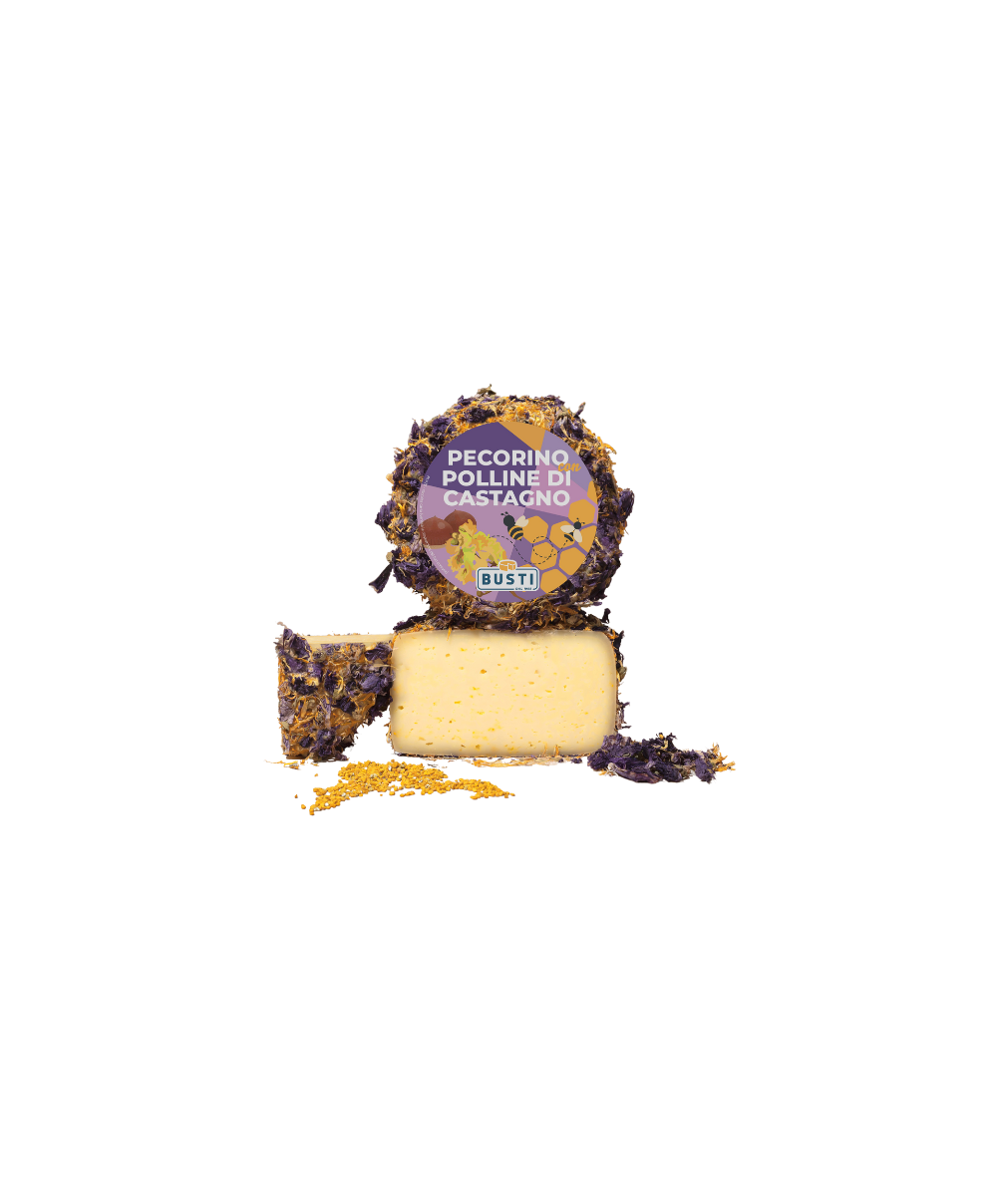 Pecorino with chestnut pollen is a perfect harmony between the delicate, creamy texture of the cheese and the richness of chestnut pollen grains, delicately embedded in the paste like tiny golden gems, adding a unique crunch to every bite. The slightly tangy flavor of sheep’s milk blends beautifully with the sweeter notes of the pollen, whose distinctive aroma evokes the forest and the earth, with subtle hints of wood and dark honey. More than just a flavorful addition, the chestnut pollen transforms the pecorino into a true elixir of well-being. Each bite offers an opportunity to nourish the body with natural, beneficial nutrients while indulging in an extraordinary gastronomic experience. This combination not only delights the palate but also contributes to daily health and wellness. Order Pecorino with chestnut pollen by Busti Formaggi today: NATURALEITALIANO guarantees worldwide delivery within 48 hours.