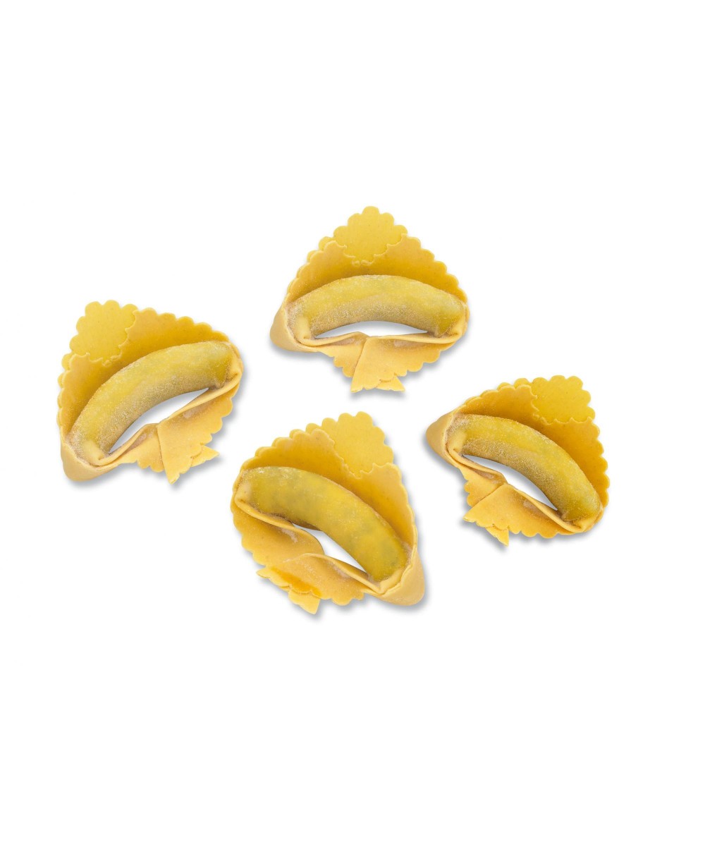 Les raviolis Gigantone de Fontaneto sont de gros tortellini, qui contiennent à l'intérieur une délicieuse garniture de ricotta et d'épinards. Leur forme, en effet, est celle typique du tortellino, mais les dimensions sont assez généreuses : environ 7 à 8 fois plus grandes ! La taille et la forme de ces jolis tortelli les rendent extrêmement attrayants. Cependant, ce qui rend chaque ravioli encore plus unique et inimitable, c'est le fait que chacun d'eux est fabriqué à la main. Le temps de cuisson est légèrement plus long que d'autres pâtes similaires, en raison de leur taille et de leur fermeture particulière. C'est pourquoi ils seront prêts en 5 minutes. Vous trouverez ici le produit au format 2 kg, à consommer sous 10 jours tant que l'emballage est intact. Cependant, une fois l'emballage ouvert, les Gigantone doivent être consommés en quelques jours et conservés au réfrigérateur.Commandez dès maintenant les Raviolis Gigantone fourrés à la ricotta et aux épinards de Fontaneto : NATURALEITALIANO s'engage à livrer le produit dans les 48 heures dans le monde entier.