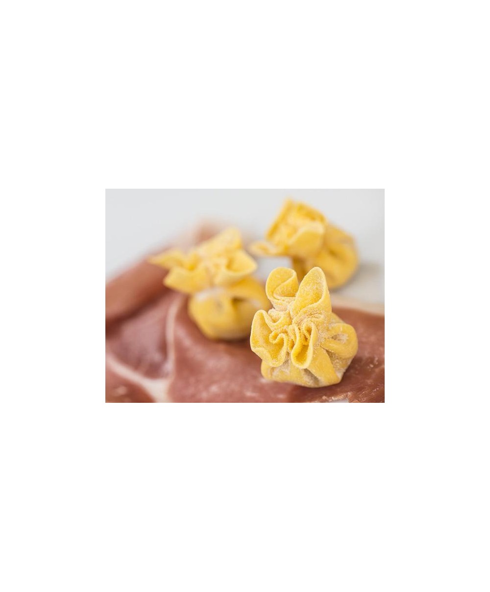 Semola di GRANO duro, farina di GRANO tenero, UOVA (20% sulla pasta 12% sul totale), acqua, sale, prosciutto crudo (64% sul ripieno; 26% sul totale) (carne di suino, sale, conservante: E252), pangrattato (farina di GRANO tenero tipo "0", lievito di birra, sale), formaggio grana padano D.O.P. (LATTE, sale, conservante: lisozima da UOVO) , LATTE scremato in polvere, sale, conservante:E200, spezie.