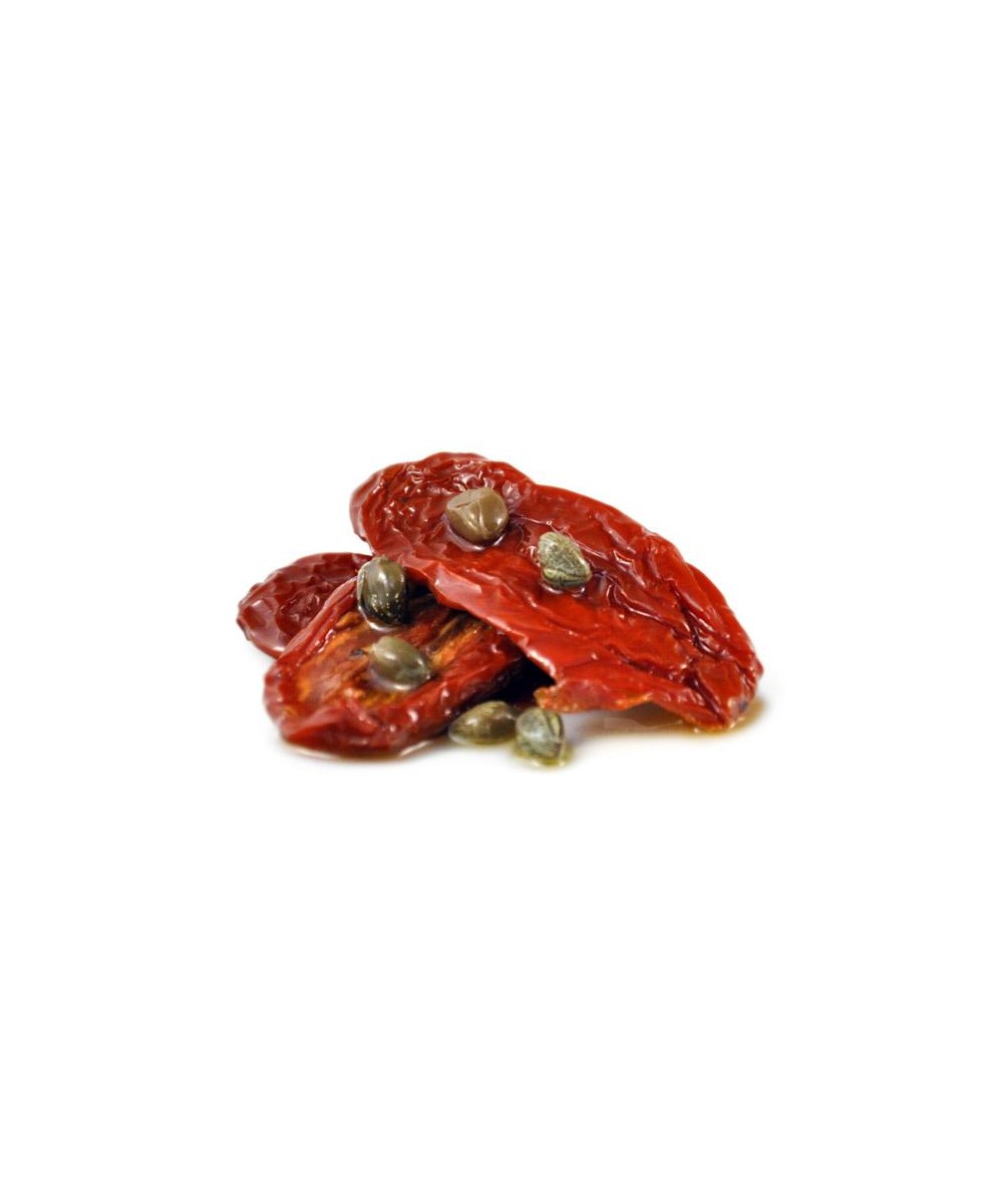 Pomodori secchi, olio di girasole, aceto di vino bianco, capperi, sale, spezie, correttore di acidità: acido citrico, antiossidante: acido ascorbico.