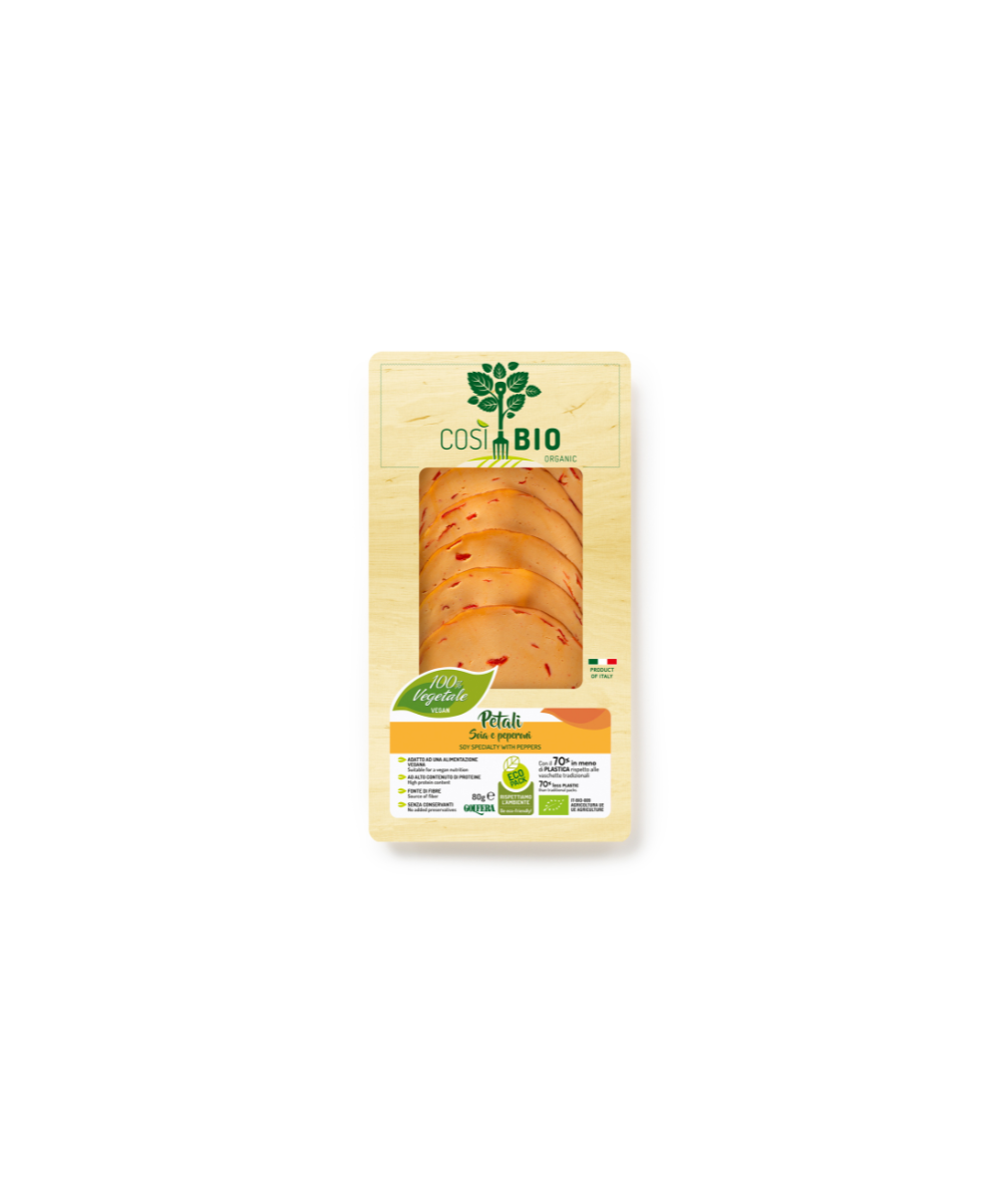 Trasforma ogni pasto in un'esperienza culinaria straordinaria con i Petali di soia e peperoni di Golfera, perfetti per i vegani che desiderano gustare piatti sani e saporiti. Realizzati con soia di alta qualità e peperoni freschi, questi affettati vegetali biologici sono una fonte ricca di proteine senza l'aggiunta di conservanti. La combinazione armoniosa di ingredienti naturali dona ai petali un gusto ricco e appagante, perfetto per arricchire ogni piatto con un tocco etico e sostenibile. Scegli i petali di Golfera per una cucina che unisce gusto e responsabilità, nel rispetto dell'ambiente e degli animali. Ordina subito i petali di Golfera: NATURALEITALIANO ti offre una selezione di prodotti ecosostenibili e adatti a tutti, per un'esperienza culinaria genuina e responsabile.